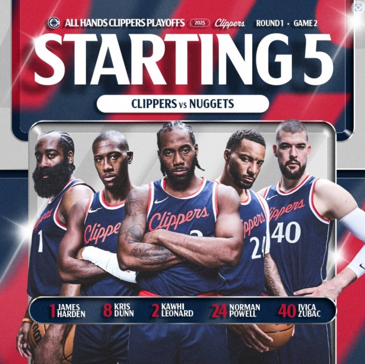 你不变我也不变!快船首发:哈登、邓恩、鲍威尔、小卡、祖巴茨