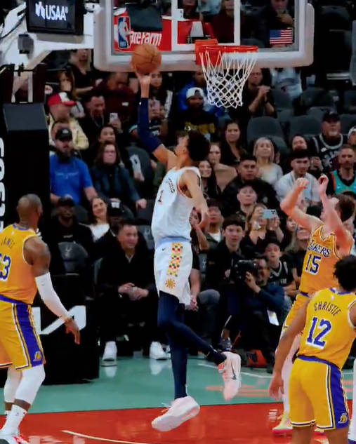 这个角度看更离谱文班单手接球后接丝滑转身果冻手已能触筐