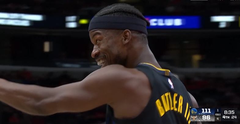 即插即用的JB!巴特勒打成2+1后伸手互动库里张牙舞爪乐开花