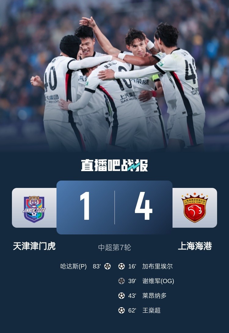 4月16日宣 中超第7轮,天津津门虎主场1-4不敌上海海港,算上本场津门虎面对海港已经遭遇五连败。