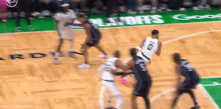 塔图姆切入要扣被波普一级恶意犯规倒地时手腕撑地&缓了好一会儿