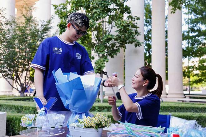一身VICTOR羽球俱乐部系列服装(VBC系列)穿搭的明星们,迅速融入羽球生活场景。黄雅琼向王赐月传授羽毛球技巧,一起品尝羽毛球女孩的精致下午茶,交流羽球心得。黄雅琼还和刘雨辰客串了一把俱乐部系列快闪店店长,和“双塔组合”共同参加冠军见面会。在活动现场,还可以玩羽毛球游戏、做羽毛球手工,尽情享受羽毛球的乐趣。