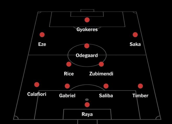 如今,当球队全员健康时,阿尔特塔完全有能力排出两套实力强劲的首发十一人。例如: