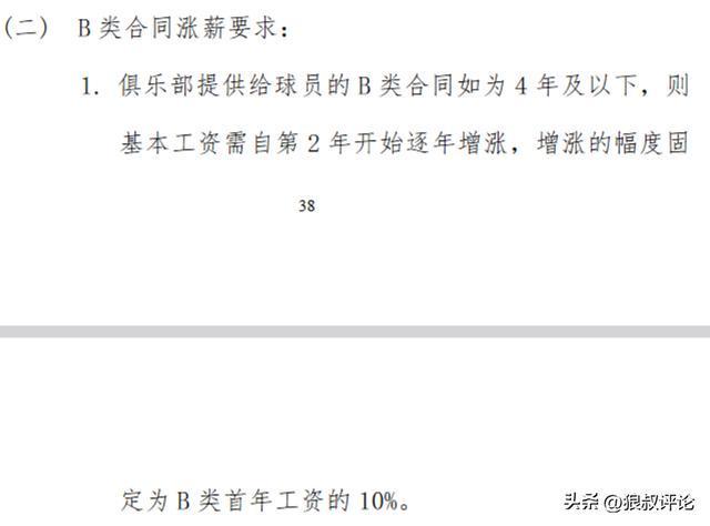 CBA的B类合同又称为保护合同,是球员生涯的第二份合同,B类合同可签署的年限最长为5年,最短为1年。球队与球员签订B类合同时,提供的年薪不得低于该球员A类合同最后一年年薪的两倍。B类合同的理论最高年薪为球队D类顶薪合同减去50万元,如某球队顶薪为600万,则B类合同最高年薪为550万;若球队顶薪为400万,则B类最高年薪为350万。