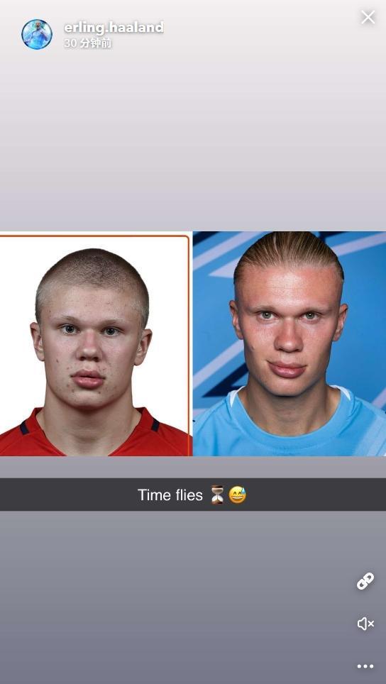 直播吧09月26日宣 哈兰德更新Snapchat动态,他晒出了自己U17欧洲杯时的定妆照和如今的对比,并配文:光阴似箭⌛