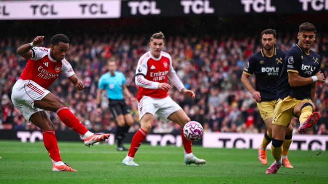 第38分钟,萨卡策动进攻,苏维门迪的直塞恰到好处,埃泽的怒射被扑出,赖斯补射,枪手取得领先。