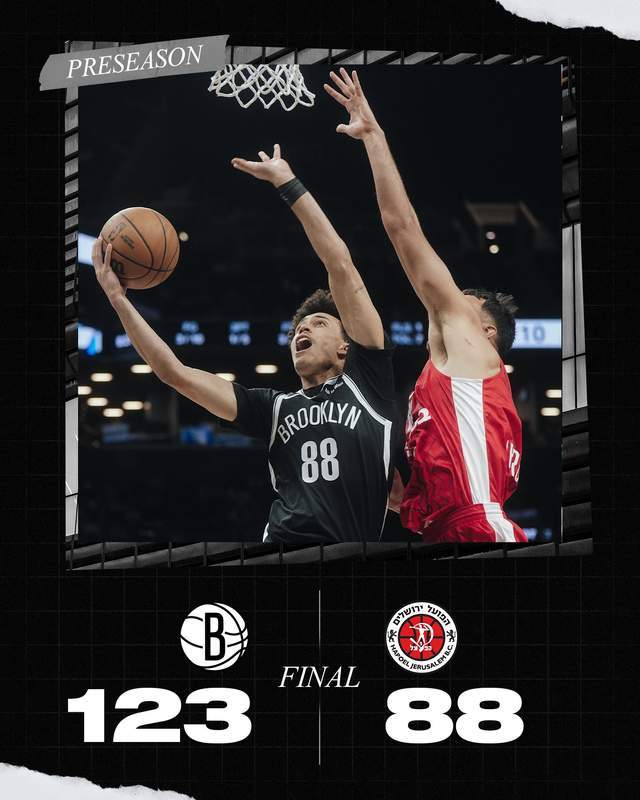 北京时间10月5日,NBA季前赛继续展开,篮网主场对阵耶路撒冷。本场比赛两队实力上的差距还是很明显的,篮网上来状态出色,早早占据场上主动,之后也是将分差不断拉开,半场打完已经取得25分的领先,下半场篮网撤下主力,分差继续拉开,最多领先40分,比赛早早失去悬念。最终,篮网123-88狂胜耶路撒冷。