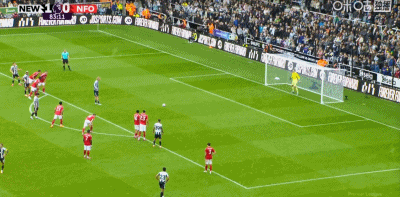 第58分钟,打破僵局,吉马良斯一脚世界波破门,纽卡1-0诺丁汉森林