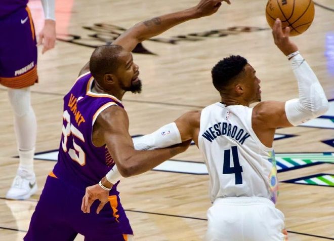 当然,火箭也逐渐暴露了新赛季所面临的最大短板,就是谢泼德这两场季前赛,确实承载不了太多支配球权的工作,失误多,对抗能力不足,什么都会点,但没有特别精通的。火箭需要控卫,哪怕是阿门和申京可以在数据统计上,维持场均合计20次助攻,但面对其他豪门球队,火箭需要一个能持球控场的选手,否则阵容严重头重脚轻。在此基础上,杜兰特最近在美女主持凯亚当斯的播客节目中,意外谈到了威少。他原话是这样的:威少是个传奇,他不该就这么退役,而且他理应有资格体面地离开NBA。