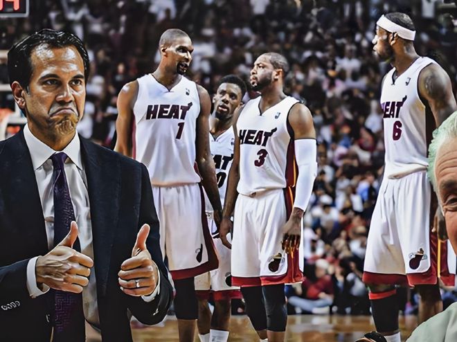 2010年夏天,NBA震撼一刻出现,詹姆斯和波什爆炸加盟热火,联手韦德组成联盟公敌三巨头。超级阵容之下,斯波的执教压力也是瞬间翻倍,不少媒体称他只是球队的过渡教练,甚至是莱利的傀儡操盘人。