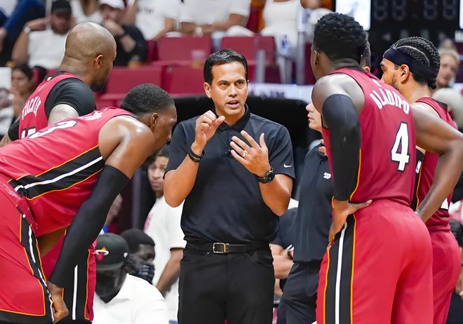 即便后来巨星离开,不少主教练沉寂无名,但斯波依旧足够稳定,在詹姆斯回到骑士后,热火进入重建期,斯波依旧坚持热火文化:努力、防守、纪律。