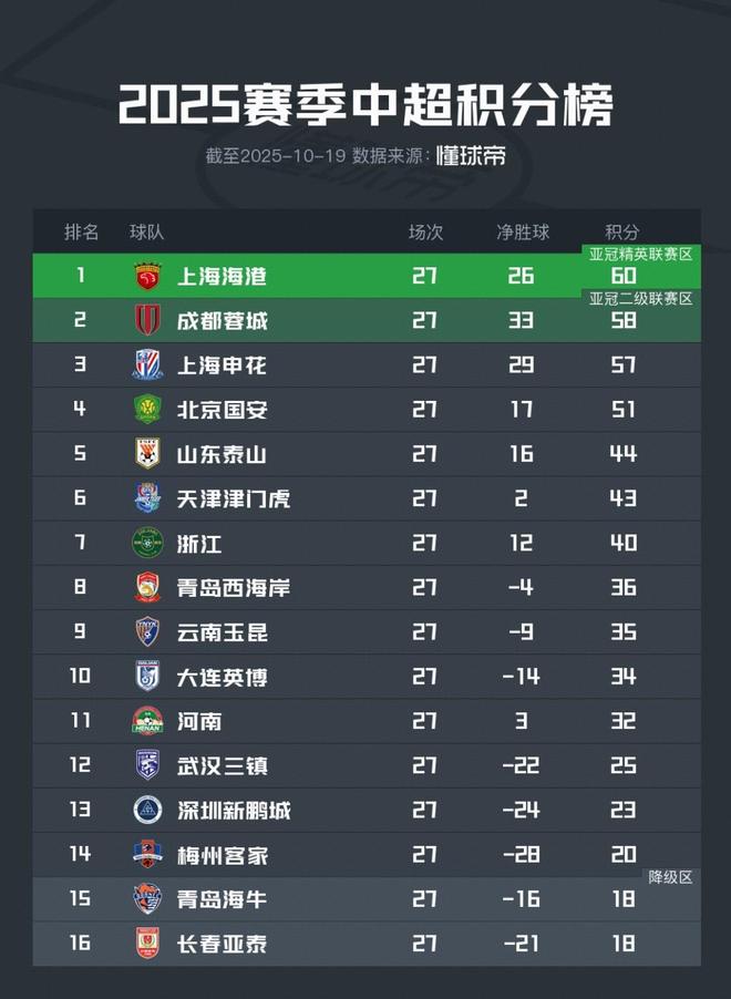- 中超 | 中超第27轮前4战报北京国安正式掉队海港再赢3场就夺冠了