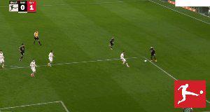 80' 伦纳特·卡尔禁区前沿横向盘带,弧线球破门,拜仁3比0领先。