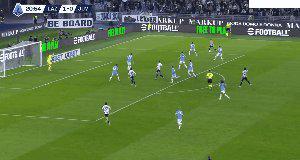 9’ 佩林大脚开出球门球,戴维头球回做被断,卡塔尔迪分球,巴希奇的射门打在防守球员身上变线入网,拉齐奥1比0领先。