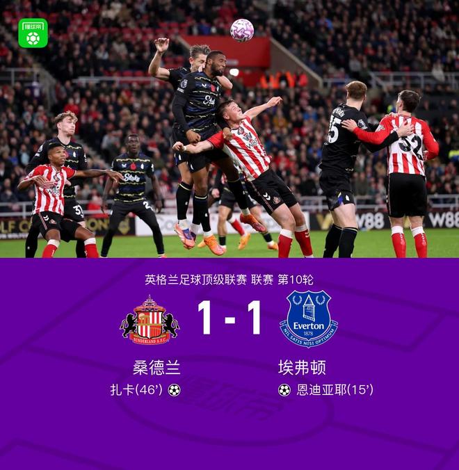 - 英超 | 桑德兰11埃弗顿,恩迪亚耶破门,扎卡扳平