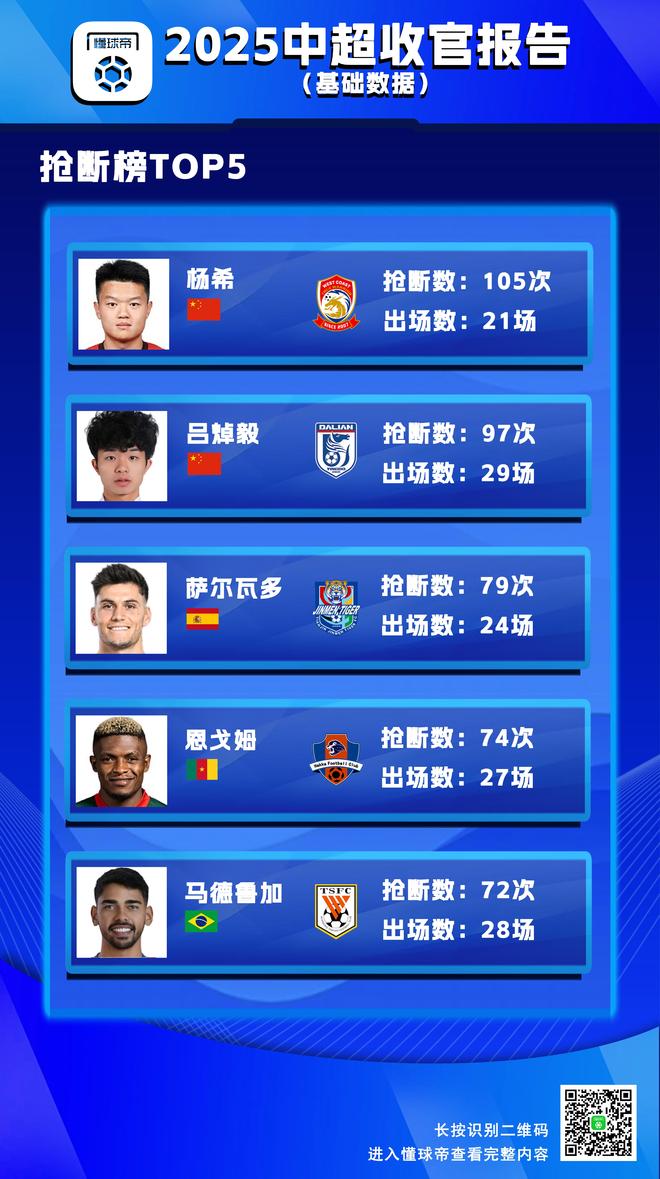 2025赛季中超联赛已经落下帷幕,一年一度的《懂球帝中超收官报告》正式跟大家见面啦。今年,我们将从懂球帝影响力数据、赛事基础数据以及中超MVP相关数据三个方面,来为您呈现这一整个赛季中超的盛况。