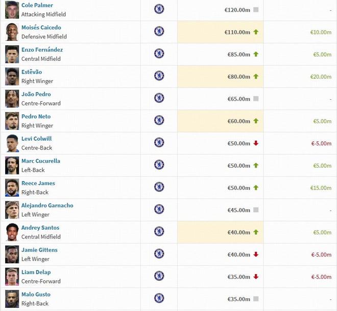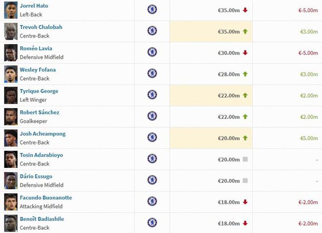 - 英超 | 切尔西球员身价变动:埃斯特旺上涨2000万欧,德拉普下跌500万欧
