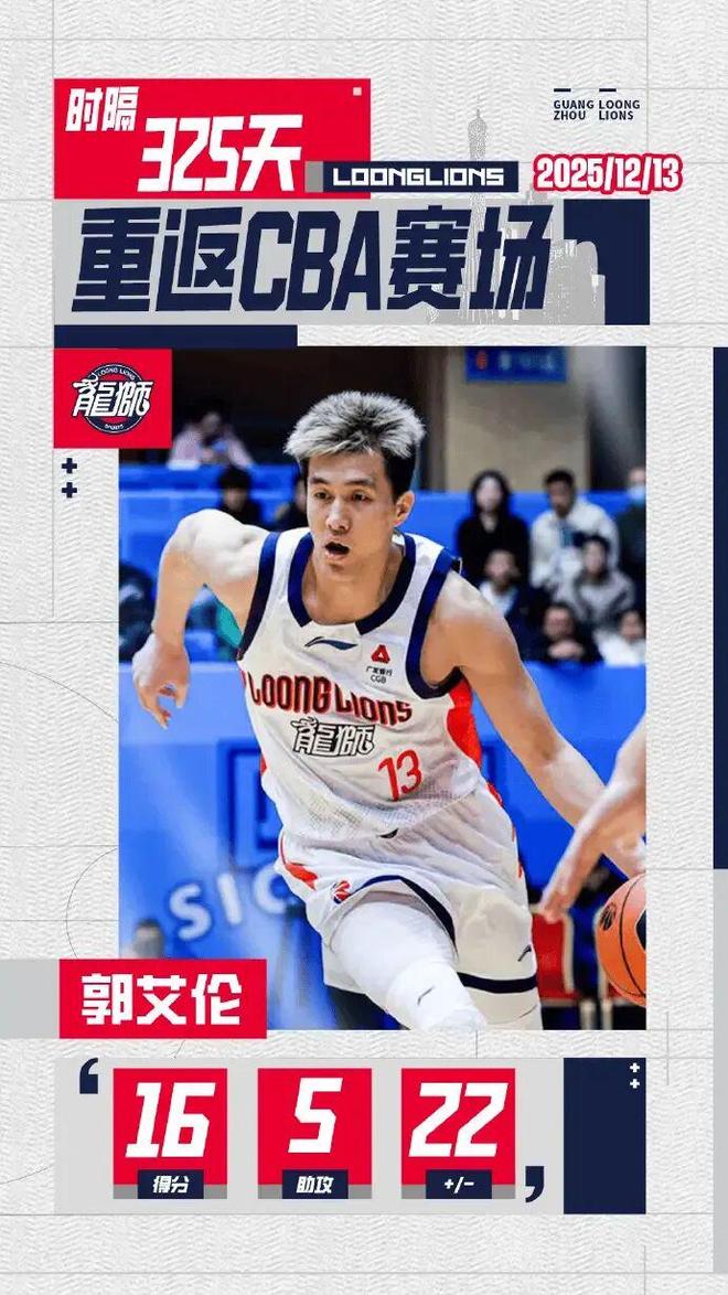 数据方面:郭艾伦出场26分钟,拿下16分1篮板5助攻正负值+22,威金顿15分6篮板2助攻2抢断,托马斯11分3篮板1助攻1盖帽,徐昕6分13篮板1助攻2抢断2盖帽正负值+26,陈国豪拿下4分6篮板。