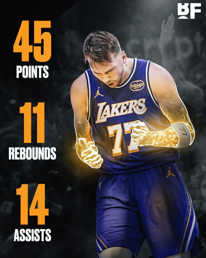 1.东契奇拿到45+三双成为湖人队史第二位,另一位是埃尔金-贝勒;