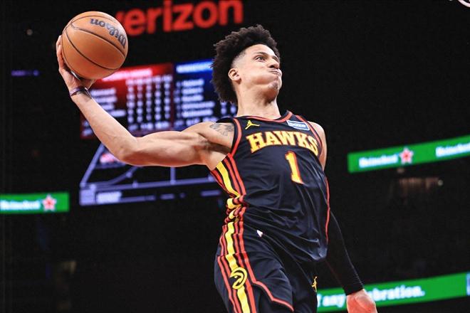 这也是开季至今杰伦约翰逊傲人表现缩影,场均可以轰下24分10.4板8.4助1.4断,命中率52.9%,三分命中率37.3%,包括得分、篮板、助攻、三分命中率、三分出手数、三分命中数等一系列数据均创生涯新高。