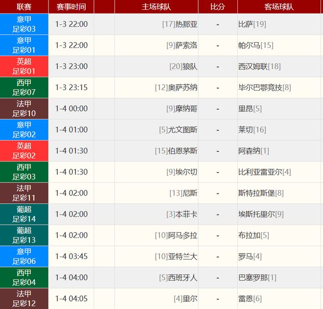 、5-德温特、23-托莫里、33-巴尔泰萨吉、8-奇克(79' 11-普利西奇)、12-拉比奥特、14-莫德里奇、19-福法纳(69' 4-里奇)、10-莱奥(69' 9-菲尔克鲁格)、56-萨勒马科尔斯</p><p>米兰替补:1-泰拉恰诺、96-托里亚尼、24-阿特卡梅、27-奥多古、31-帕夫洛维奇、30-亚沙里、38-卡斯蒂耶洛</p><p>卡利亚里首发:1-卡普里莱、4-马齐泰利(83' 21-卡弗沃蒂)、6-卢佩尔托、15-胡安·罗德里格斯、28-扎帕、33-奥伯特(61' 3-伊德里西)、2-帕莱斯特拉、8-阿多博、16-普拉蒂(61' 29-博雷利)、9-基里索(83' 30-帕沃莱蒂)、94-S-埃斯波西托(66' 10-盖塔诺)</p><p>卡利亚里替补:24-乔奇、31-拉杜诺维奇、18-迪帕尔多、23-尼科拉·平图斯、26-米纳、14-戴奥拉、20-罗格、77-卢文博、27-利特塔、37-特雷皮</p><p><strong>沙特联 吉达国民 3-2 利雅得胜利</strong></p><p class=)