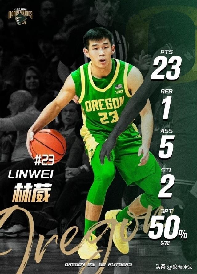 上一场,俄勒冈大学以85-88不敌罗格斯大学。林葳出战33分钟,14投8中,其中三分12投6中,获得23分1篮板5助攻2抢断。